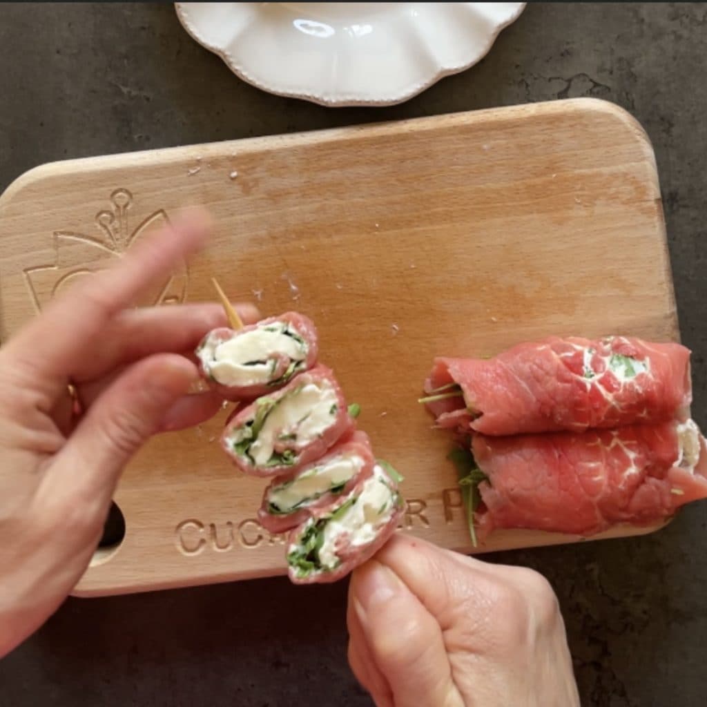 Carpaccio van rundvlees, een fris gerecht perfect voor warme zomerdagen. Met carpaccio van rundvlees heb ik spiesjes gemaakt door de dunne plakjes vlees te vullen, zodat ze ook perfect zijn om te serveren op een buffet of als voorgerecht. Carpaccio moet zeer vers worden geconsumeerd, anders kunnen er ernstige gezondheidsproblemen optreden. Carpaccio werd voor het eerst geserveerd precies hier in Venetië door Cipriani in de beroemde Harry’s Bar. U kunt de carpacciorolletjes niet alleen met rucola serveren, maar ook met tomaten carpaccio. Laten we nu eens kijken hoe je carpaccio van rundvlees bereidt en hoe je het op een andere manier kunt bereiden dan de gebruikelijke carpaccio met rucola en Parmezaanse kaas. Als je het probeert, laat het me weten, Barbara