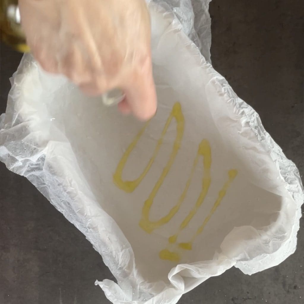 Bekleed een ovenschaal met bakpapier en vet het lichtjes in met extra vergine olijfolie.