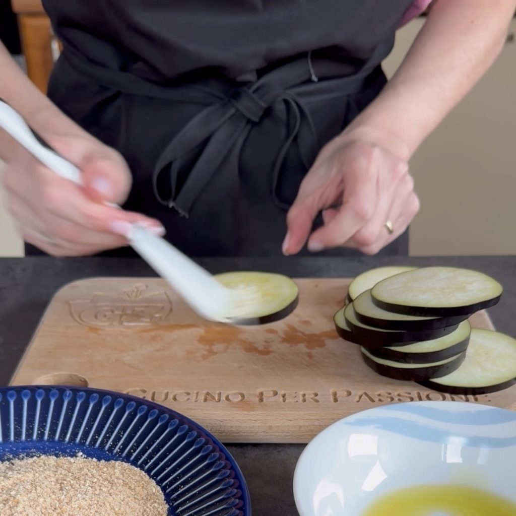 • bestrijk elke plak met wat extra vierge olijfolie,
