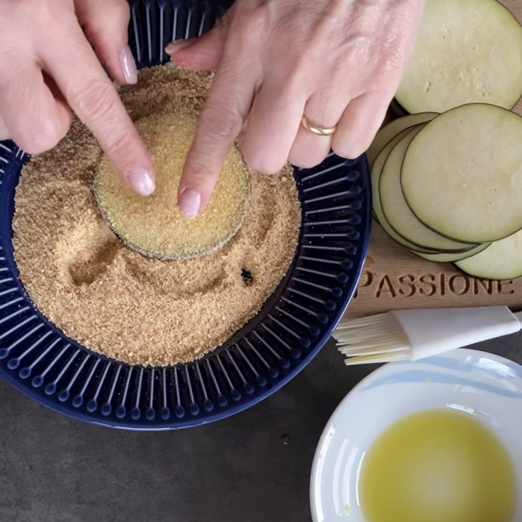 • haal ze door het paneermeel en leg ze beetje bij beetje op de bakplaat.