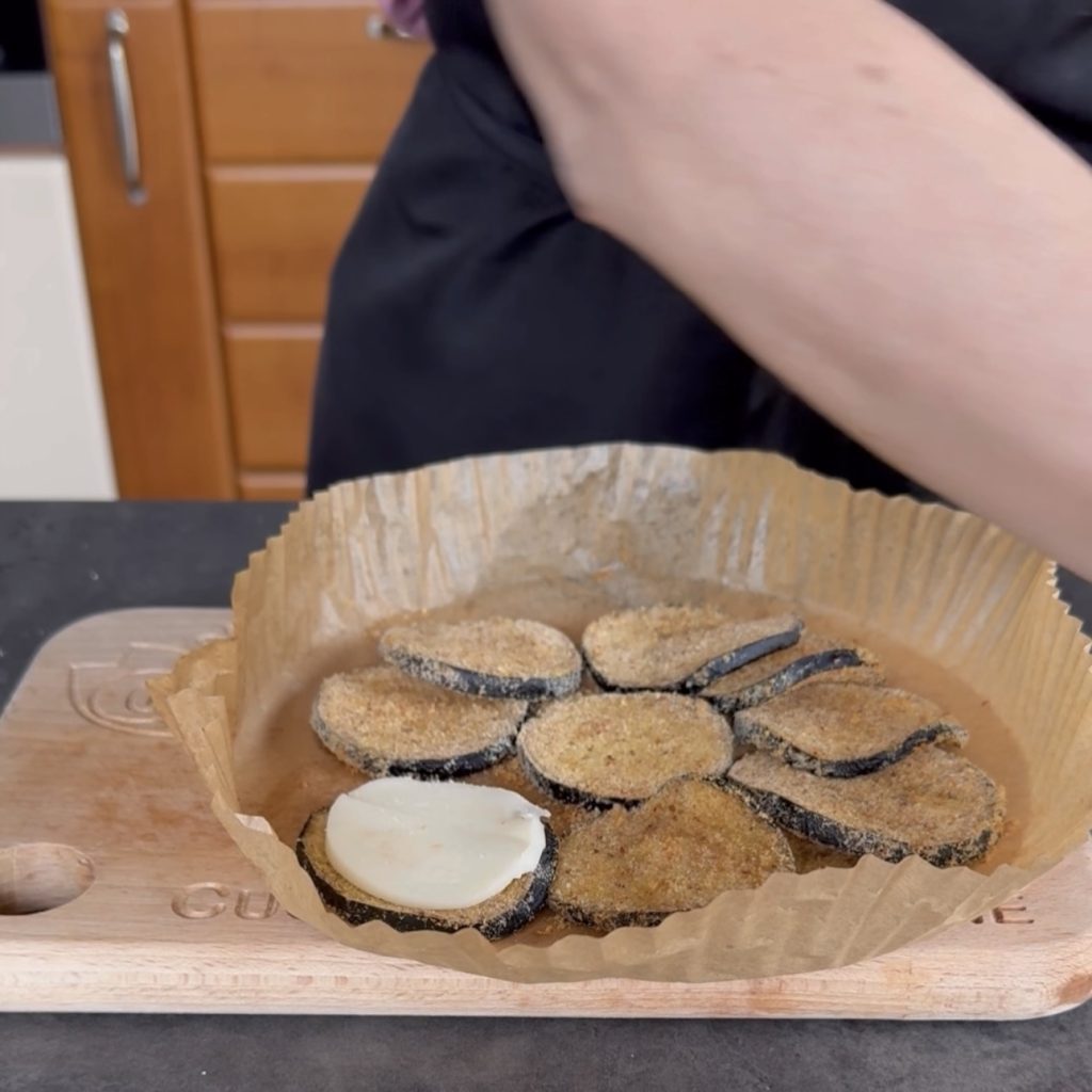 • plaats opnieuw in een statische oven op 180C° voor 5 minuten of in de airfryer op 180C° voor 4 minuten, de tijd die nodig is om de kaas te laten smelten.