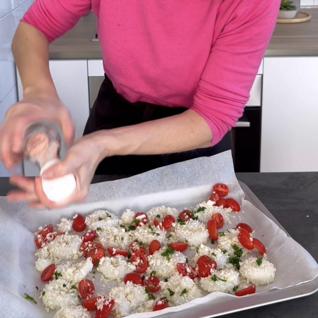 Hoe bewaar je de Gegratineerde pijlinktvissen uit de oven met kerstomaten
