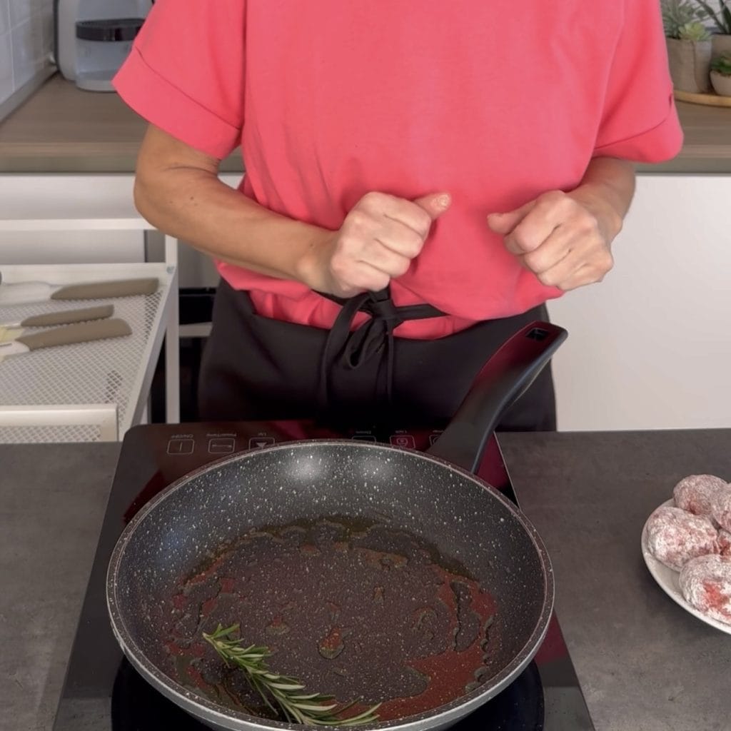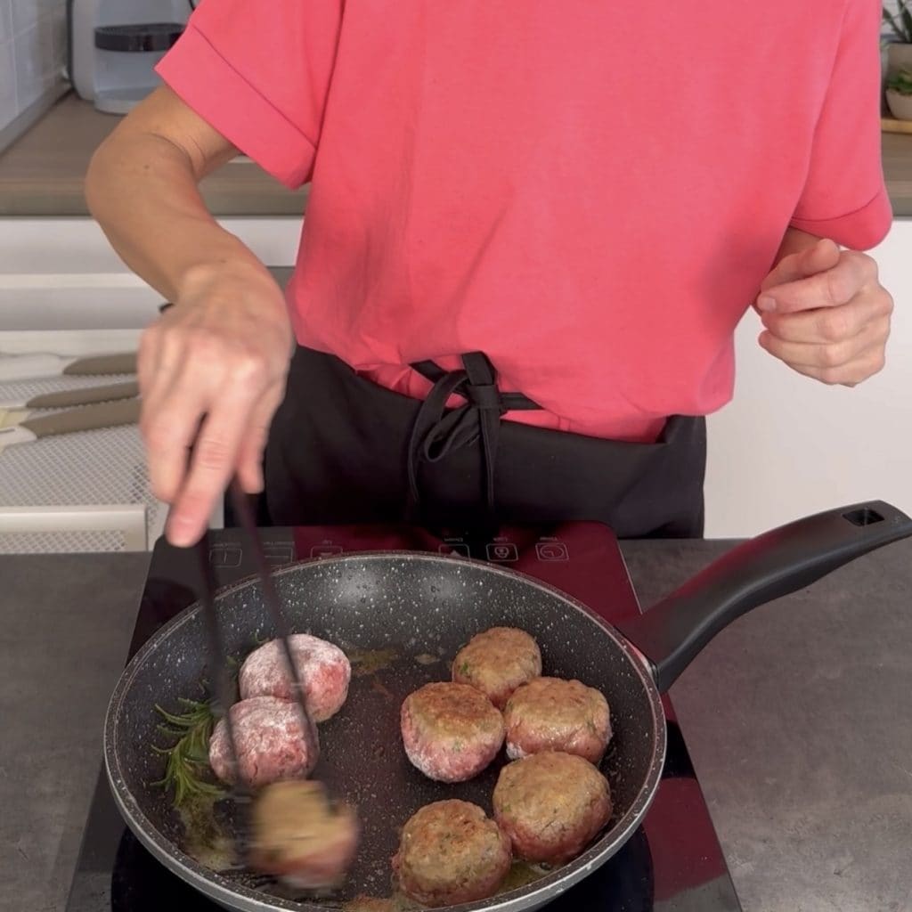 • wanneer de olie goed heet is, voeg de gehaktballen toe en bak ze goed aan beide zijden.