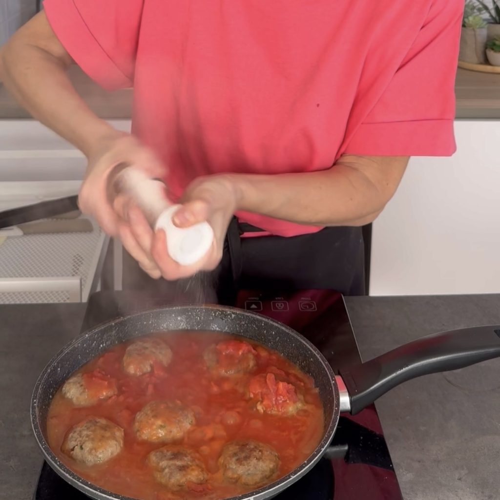 • Kook minstens 15 minuten, de kooktijd varieert afhankelijk van de grootte van de gehaktballen, pas daarna het zout aan,