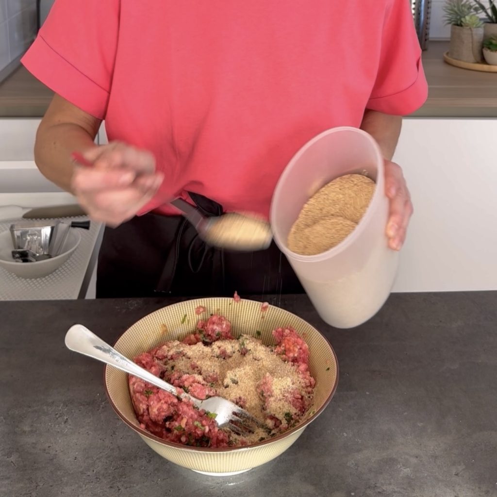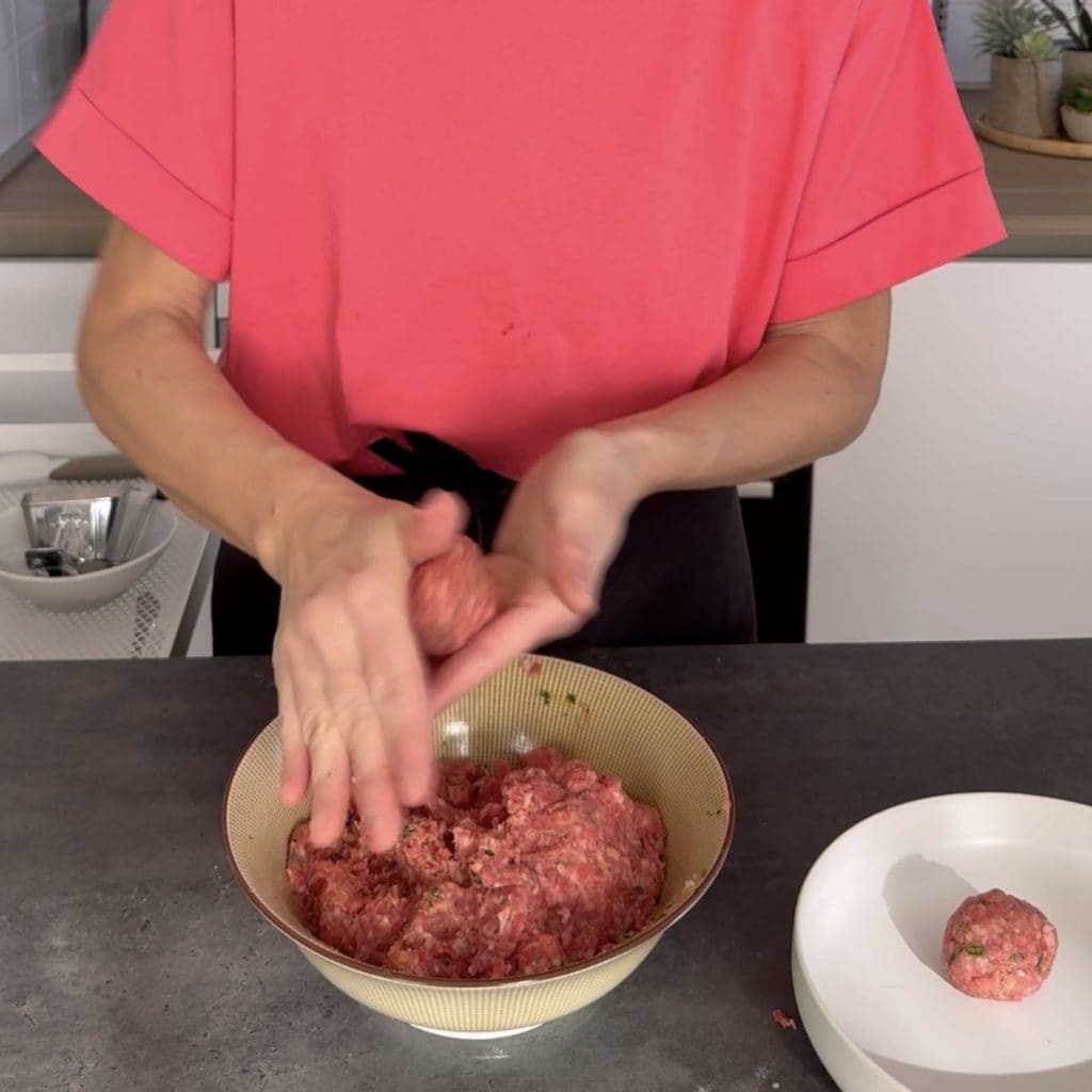 • Neem een deel van het mengsel en maak ballen ter grootte van een abrikoos,