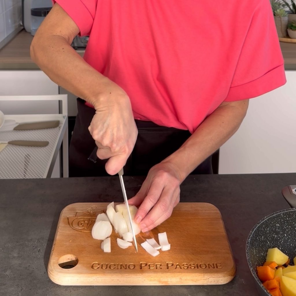 snijd ook de aardappel,