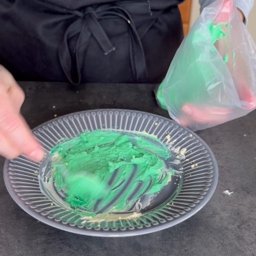 Wanneer je een mooie crème hebt verkregen, voeg dan een paar druppels gel voedingskleurstof toe.