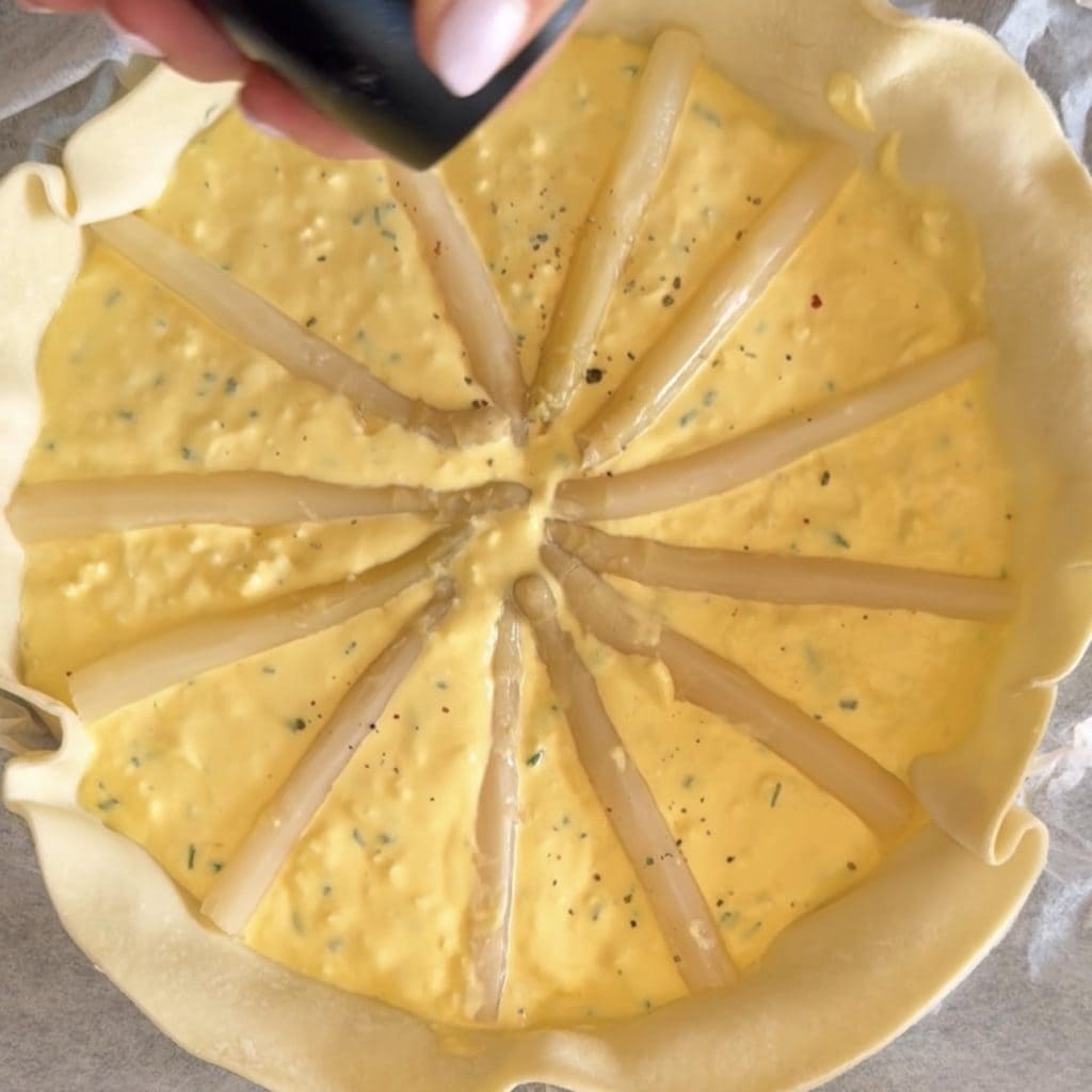 • Wanneer het gaar is, haal de Hartige taart met asperges en eieren uit de oven en serveer het warm of op kamertemperatuur.