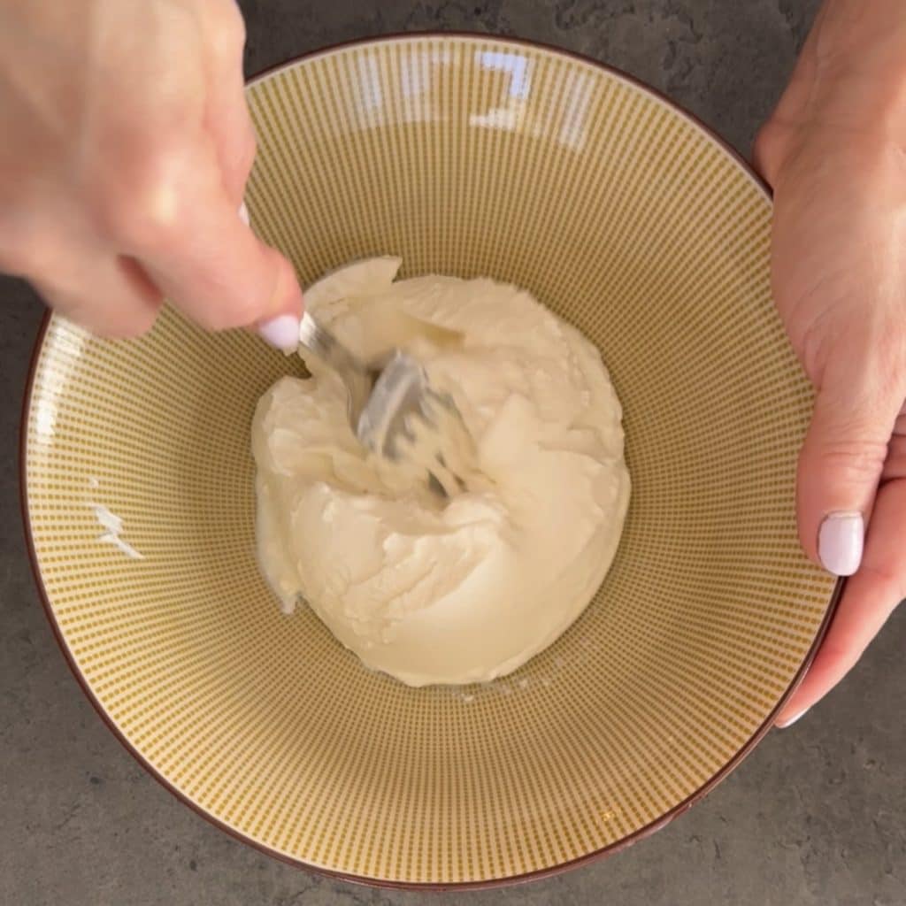 • in een andere kom giet je de ricotta en werk je het tot een crème,
