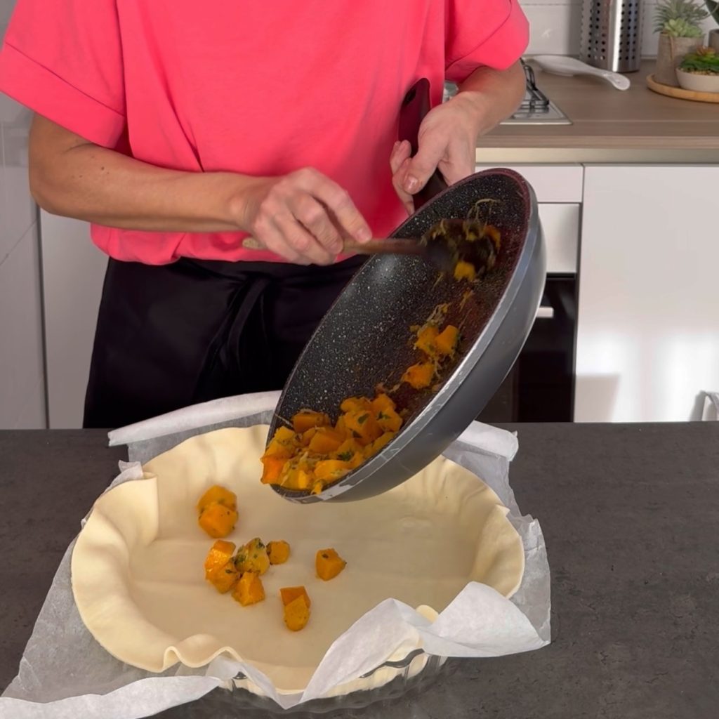 Hoe bereid je de Hartige taart met pompoen en paddenstoelen
