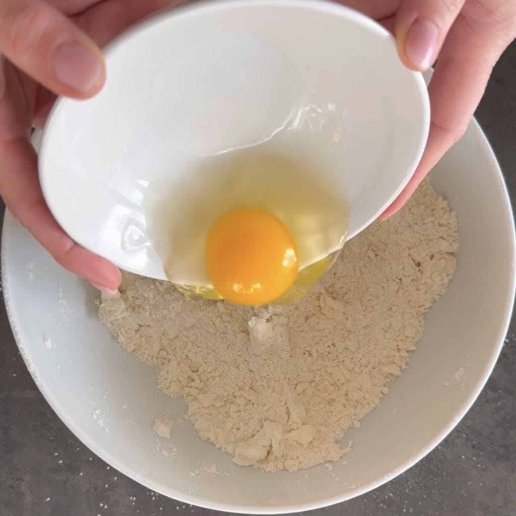 • voeg een ei toe en kneed tot een glad en stevig deeg.