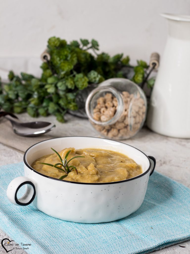 Kikkererwten vellutata is een eenvoudig en smaakvol voorgerecht, heerlijk zowel warm gegeten op koude winterdagen als op kamertemperatuur tijdens de zomer. De kikkererwtensoep kan worden geserveerd met plakjes geroosterd brood, eventueel gearomatiseerd met knoflook voor extra smaak aan de soep. De kikkererwtensoep is romig, mede dankzij de aardappel die samen met de kikkererwten wordt gekookt en de smaak van het gerecht delicaat maakt. De kikkererwten velouté is perfect voor kinderen en je kunt ook wat pastina toevoegen voor een nog rijker voorgerecht. Voor een snelle kikkererwtensoep kun je ingeblikte kikkererwten gebruiken als alternatief voor droge kikkererwten, die je 10/12 uur moet laten weken en daarna koken. Als je ook van kikkererwten houdt, raad ik je aan ook andere RECEPTEN MET KIKKERERWTEN te bekijken. Laten we nu kijken hoe je de kikkererwtensoep bereidt en als je het probeert, laat het me weten. Barbara