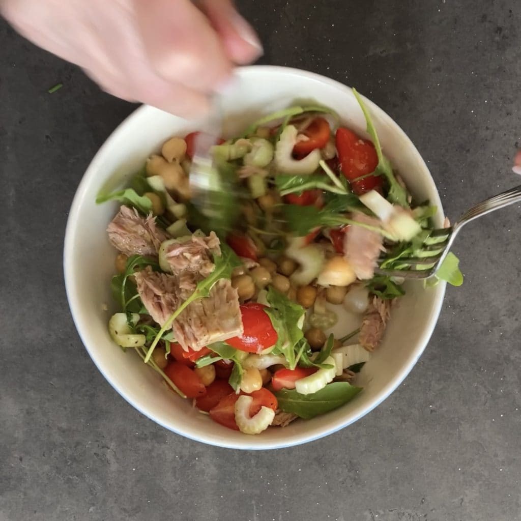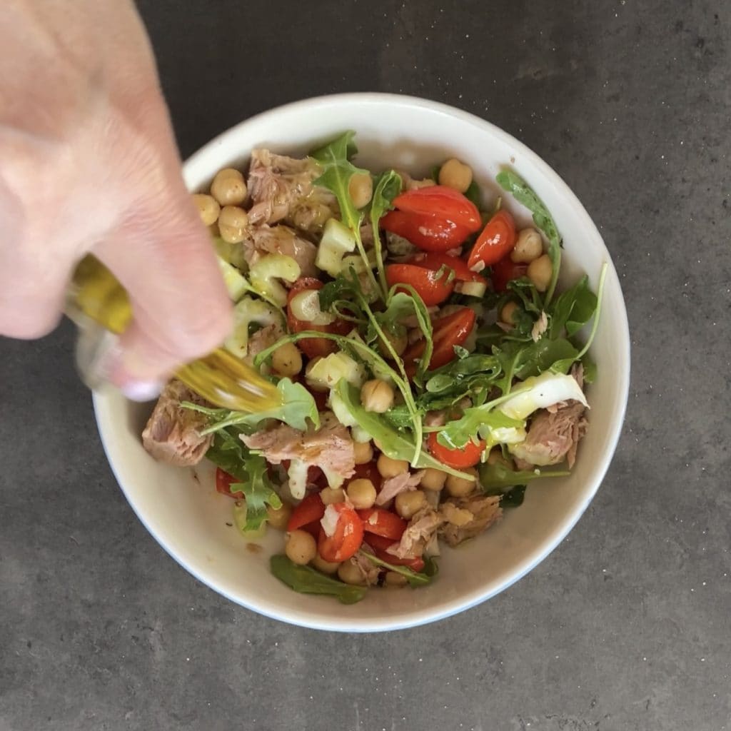 Hoe kikkererwtensalade met tonijn en cherrytomaten te bereiden