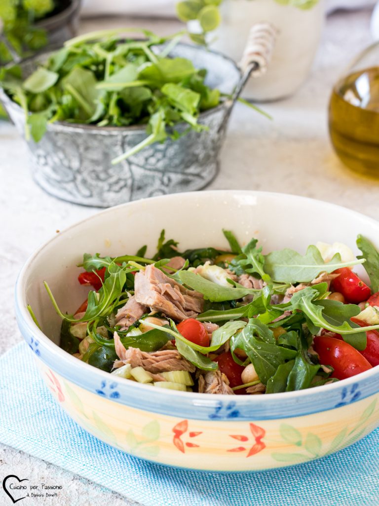 Kikkererwtensalade met tonijn en cherrytomaten is een eenvoudige salade die je in een paar minuten bereidt. Het is ook perfect om mee naar het werk te nemen voor de lunchpauze. Om de kikkererwtensalade smakelijk te maken, kun je zowel gedroogde kikkererwten gebruiken die de hele nacht in water zijn geweekt en vervolgens gekookt, of als je haast hebt, kun je ook gekookte kikkererwten uit een pot gebruiken. In dat geval hoef je ze alleen maar onder stromend water af te spoelen om ze goed schoon te maken en het bewaarwater te verwijderen, vooral als ze in niet-glazen potten zijn bewaard. Als je van salades houdt, raad ik je aan ook mijn andere saladerecepten te bekijken, je zult zeker nog een ander recept vinden om te proberen. Nu gaan we kijken hoe we de kikkererwtensalade met tonijn en cherrytomaten maken en laat me weten als je het probeert. Barbara