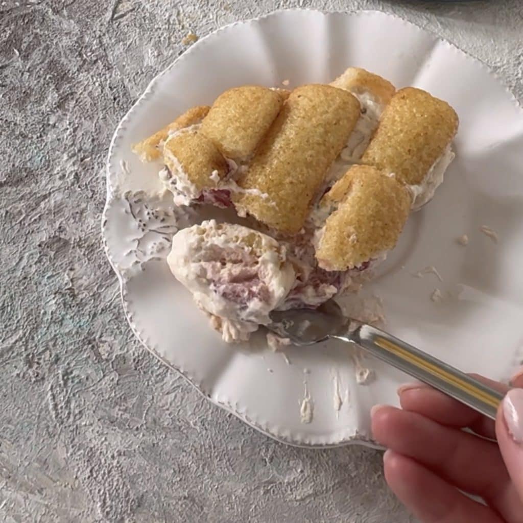 bedek met de pavesini, ook gedoopt in het aardbeiensap.