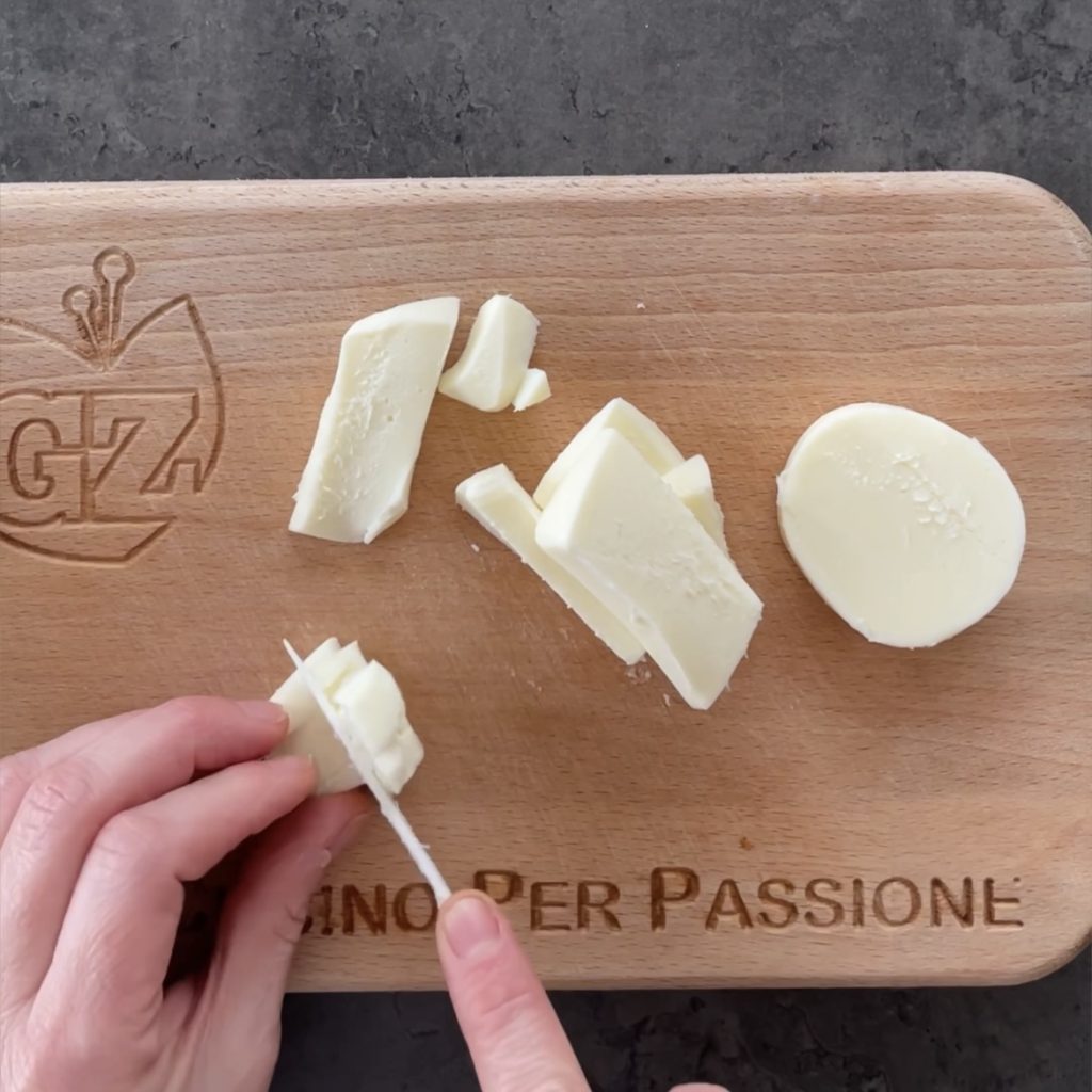 Snijd de smeltkaas die je hebt gekozen in kleine stukjes.