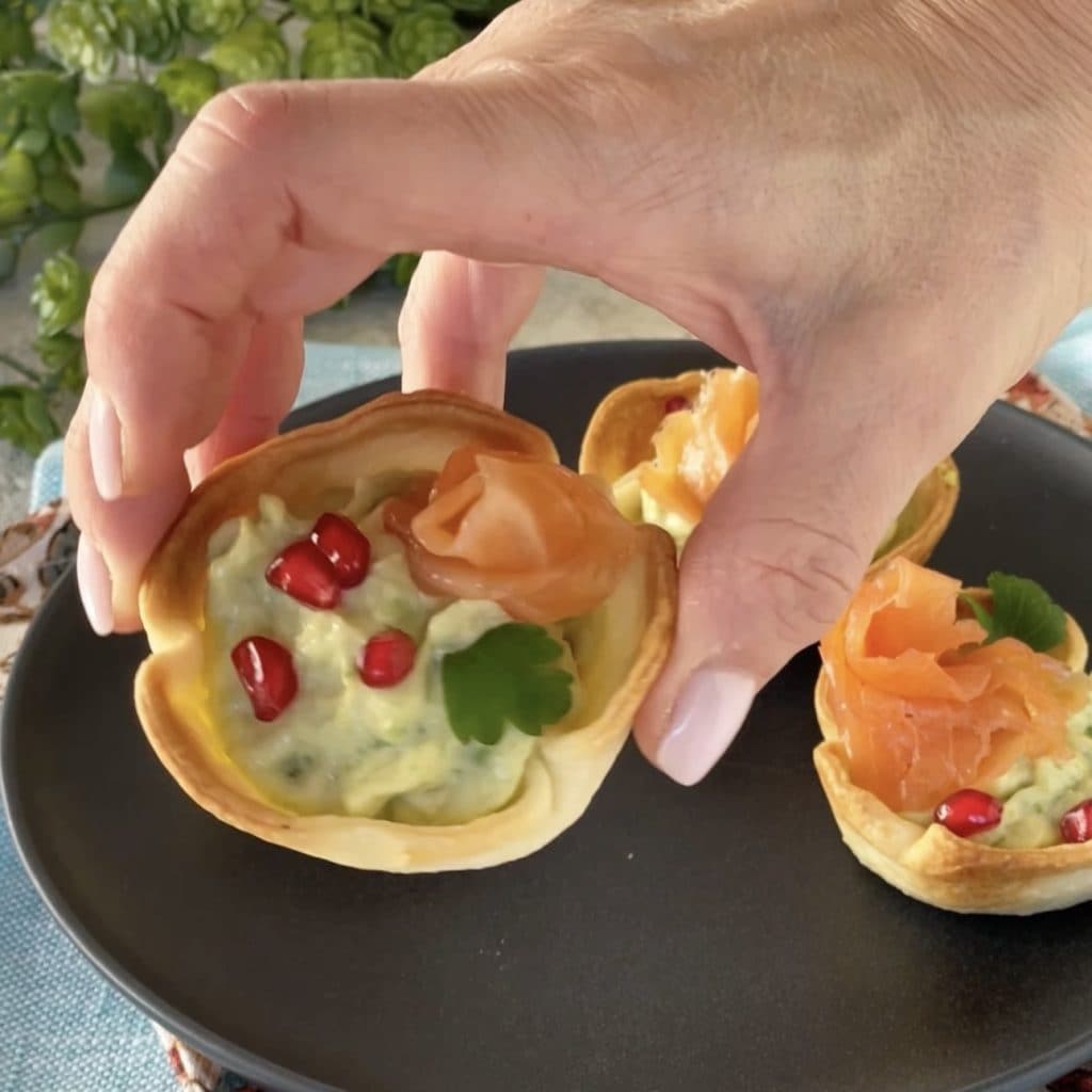 Mandjes van korstdeeg met zalm en avocado een heerlijk voorgerecht perfect voor grote gelegenheden en alle kerstfeesten, inclusief oudjaar. De mandjes met korstdeeg zijn ook perfect om te serveren bij een aperitief of in een buffet. Als je op zoek bent naar andere soorten hartige mandjes voor voorgerechten raad ik ook de HARTIGE KORSTDEEGMANDJES aan en als je van avocado en zalm houdt, mag je andere recepten met zalm en avocado niet missen. Nu gaan we kijken hoe je de mandjes van korstdeeg met zalm en avocado maakt en als je ze probeert, laat het me weten. Barbara