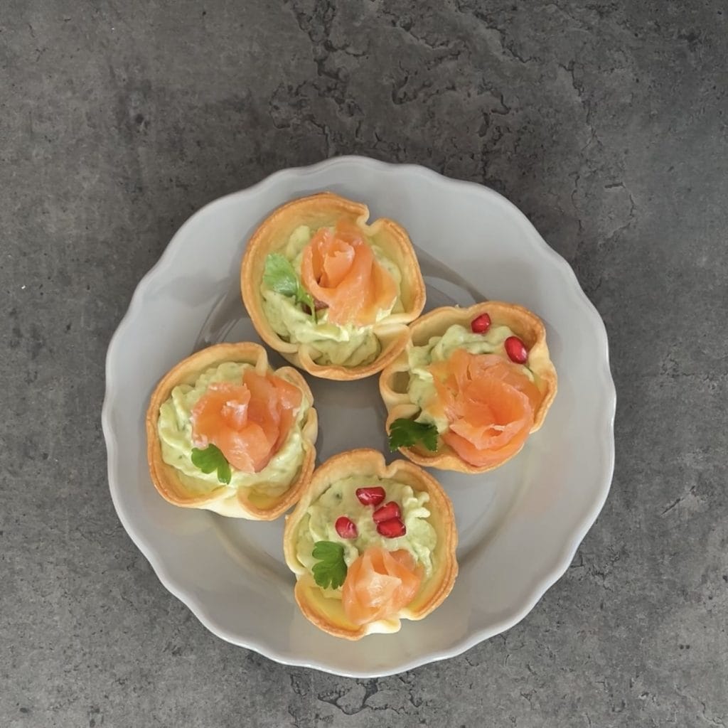 Serveer de mandjes van korstdeeg met zalm en avocado of bewaar ze in de koelkast tot je ze serveert.