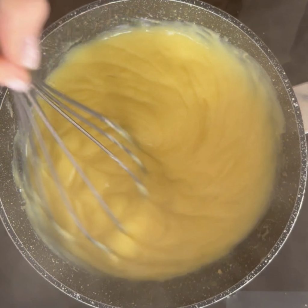 • Zet het op het vuur en blijf roeren tot het aan de kook komt en je zult zien dat het dikker wordt.