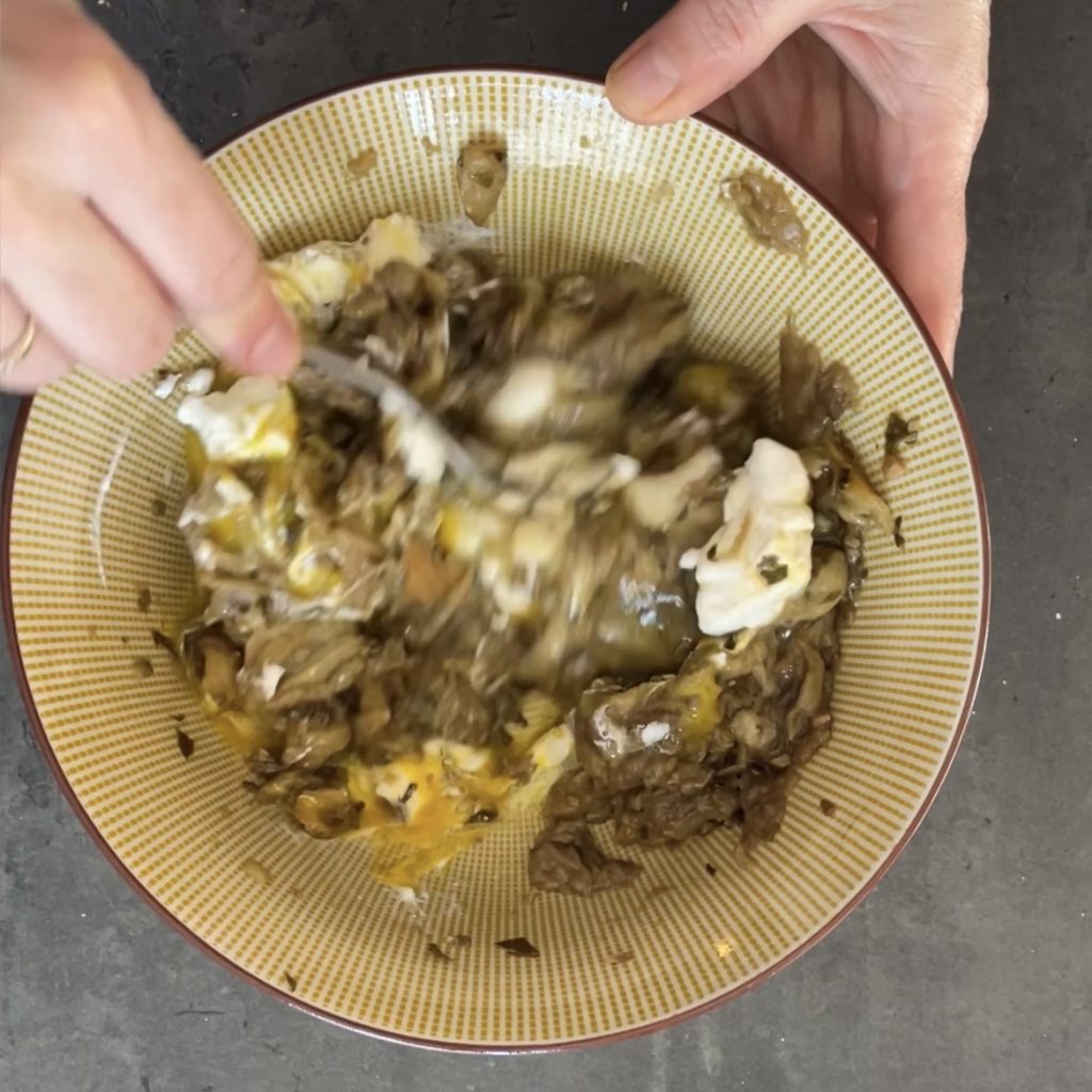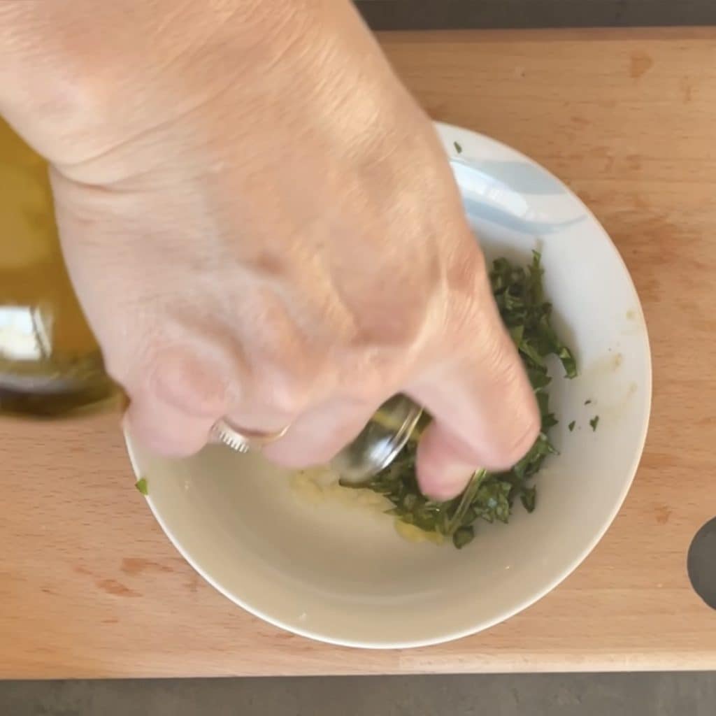 • giet het dan in een kom en voeg extra vergine olijfolie toe, meng goed en laat het op smaak komen.