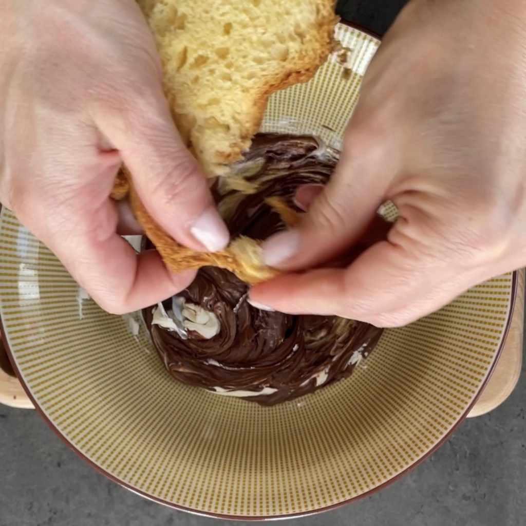 Laten we beginnen met het maken van de pandorobolletjes met nutella, snij de pandoro in plakjes,
