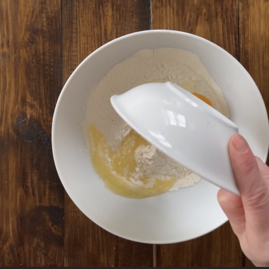 Giet de dooiers in de bloem.