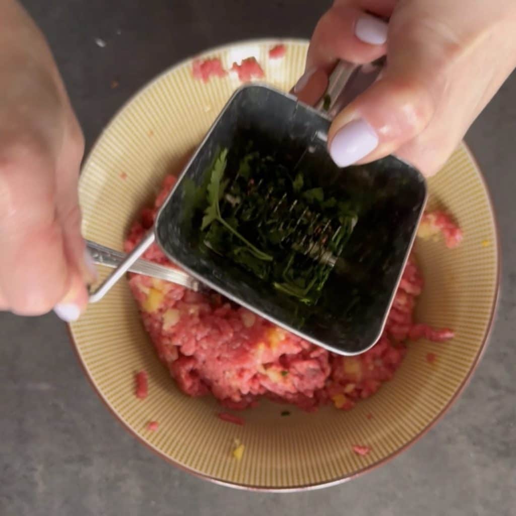Neem wat gehakt en vorm de gehaktballetjes, rol ze tussen je handen om een mooie ronde vorm te geven.