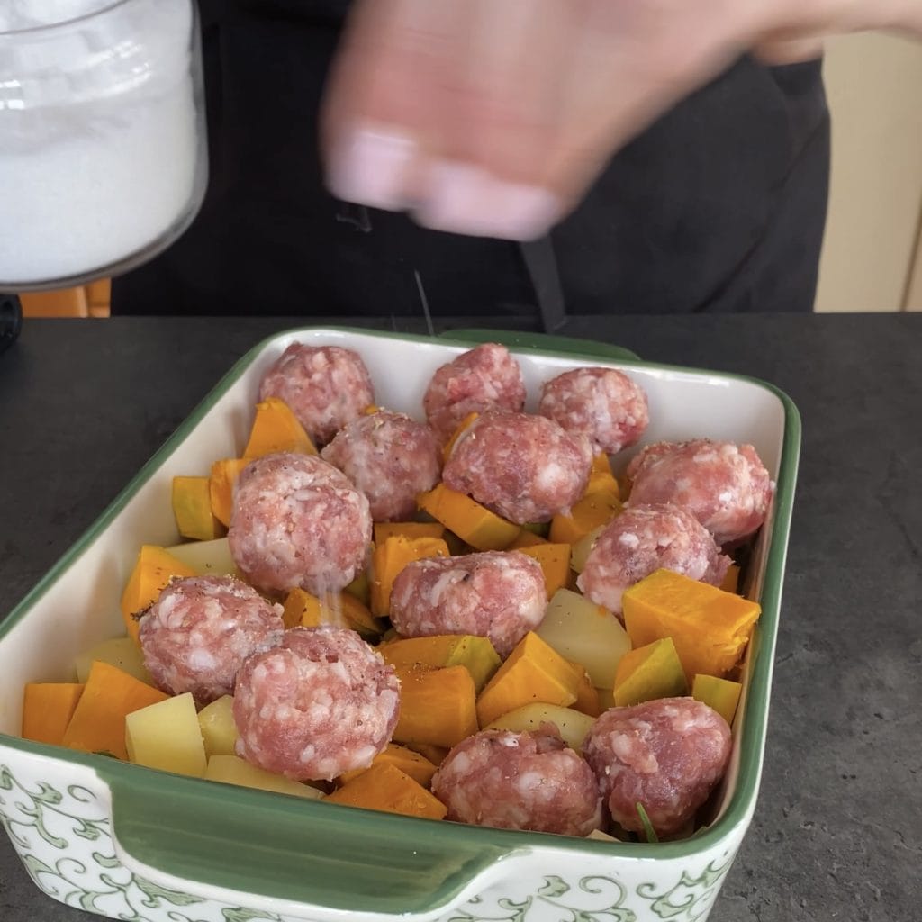 Hoe bewaar je de Pompoen aardappelen en worst uit de oven