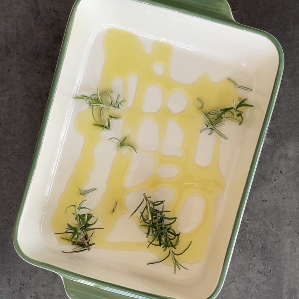 Giet een scheutje olie in een ovenschaal,