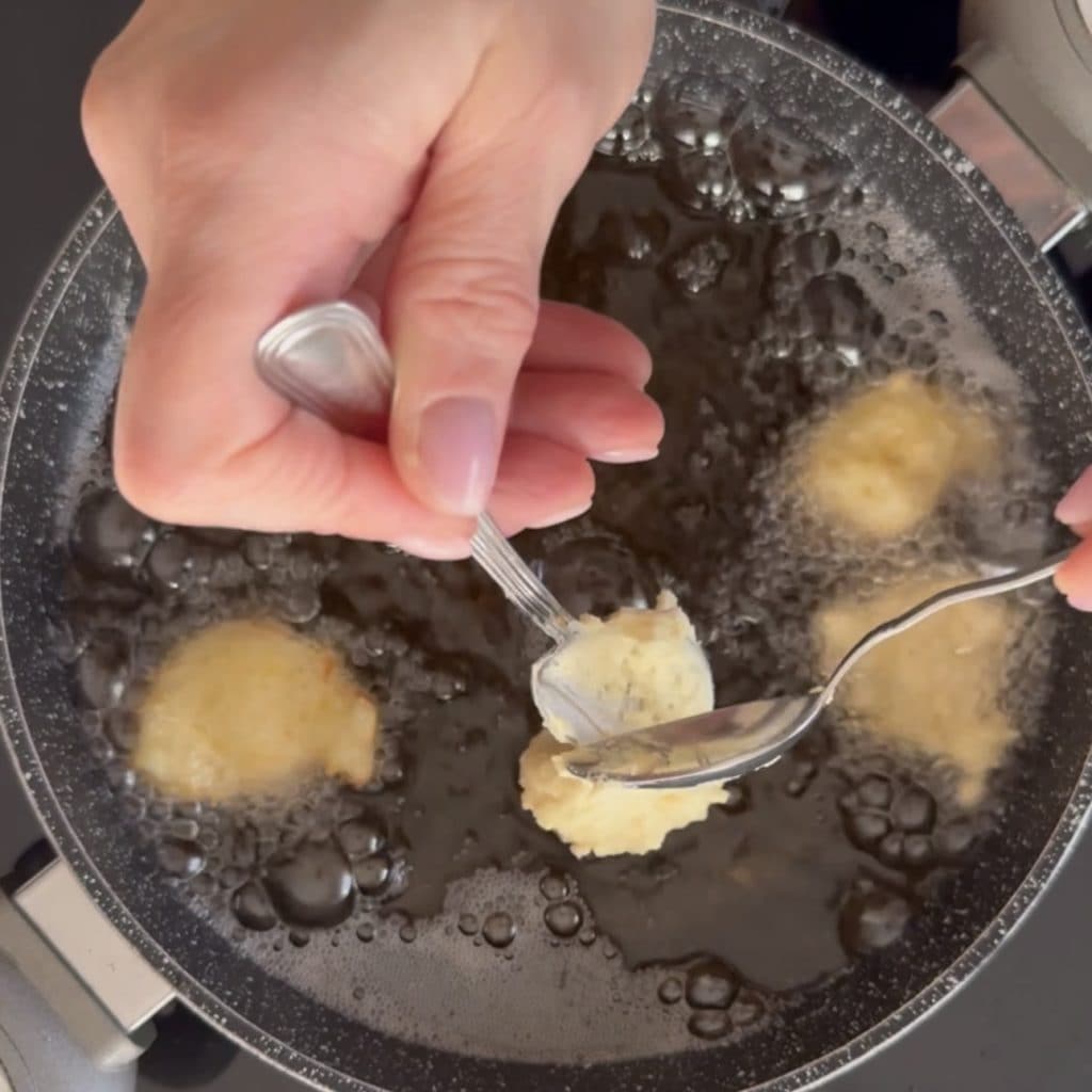 • Draai de beignets met een vork zodat ze gelijkmatig bakken,
