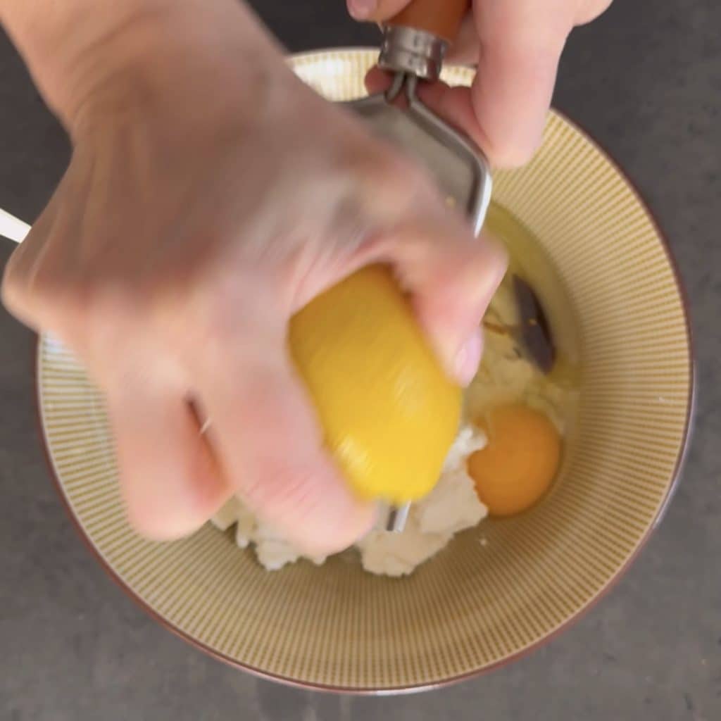 • de geraspte schil van een onbehandelde citroen en meng goed met een vork tot je een glad en homogeen mengsel hebt.