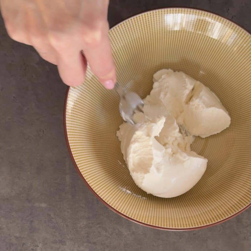 Werk alles goed door met een vork zodat je een homogeen en klontvrij mengsel krijgt.