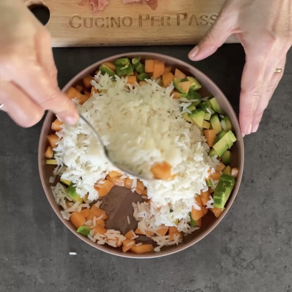Hoe de Rijstsalade met ham en meloen met avocado te bereiden