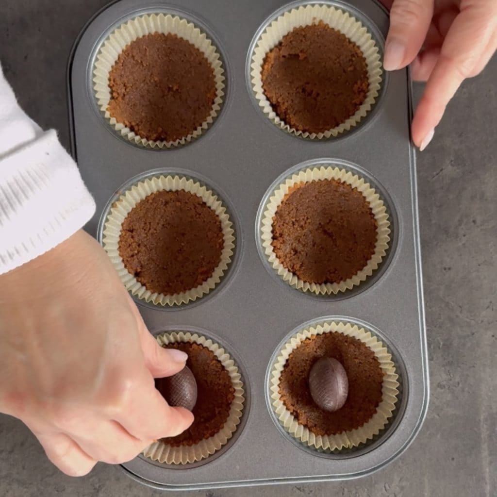 • Plaats in het midden een chocolade-eitje en druk het lichtjes op de koekjes, zet het vervolgens 30 minuten in de koelkast.