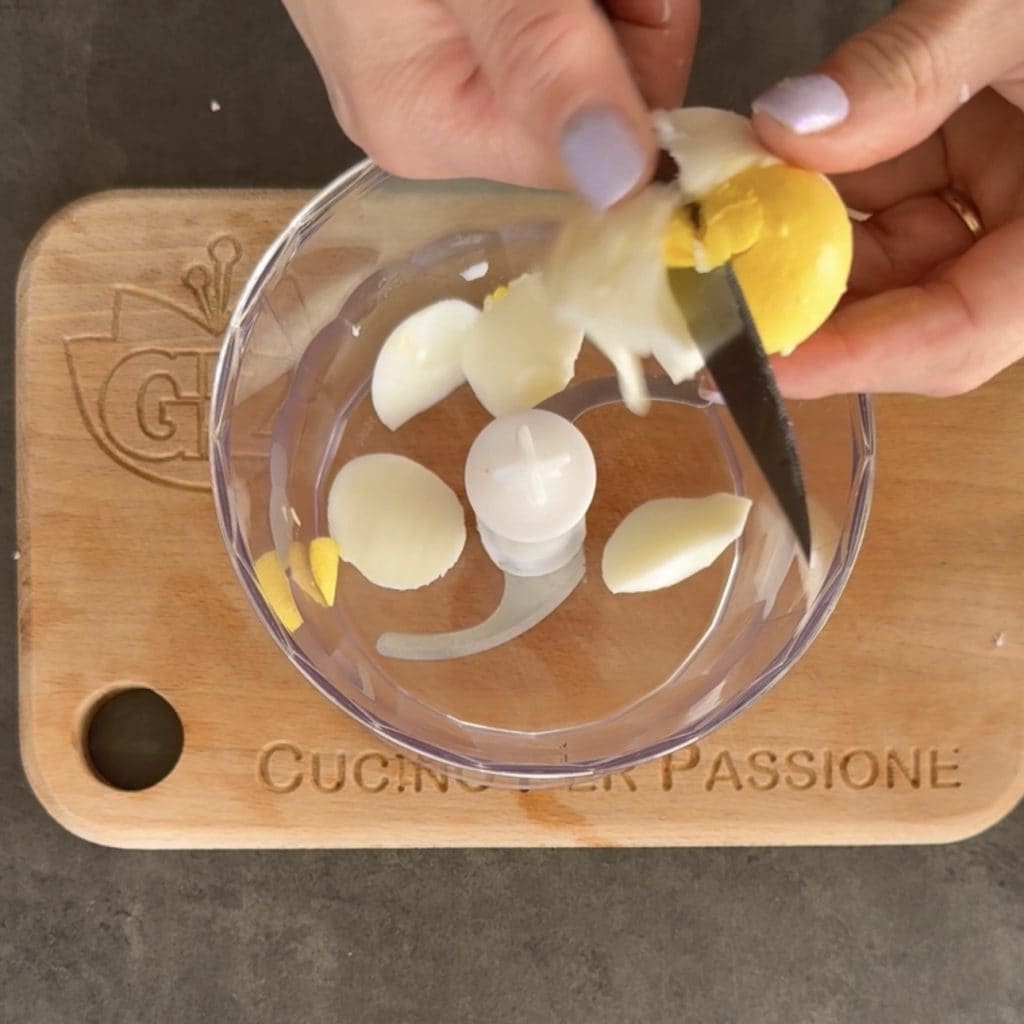 Laten we beginnen met het bereiden van de Tonijnsaus paprika’s. Doe de eieren in een steelpan, voeg wat water toe en zet op het vuur. Zodra het water kookt, laat je ze 7 minuten koken. Daarna laat je ze afkoelen onder koud stromend water. Dankzij deze thermische schok zullen de eieren gemakkelijk te pellen zijn. Kook ondertussen de paprika’s