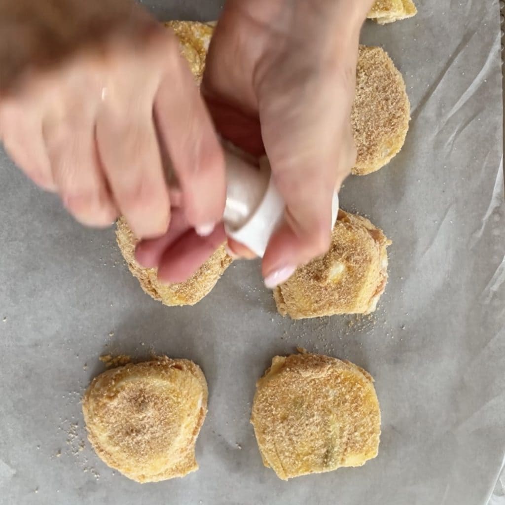 sluit af met de tweede venkelplak en druk goed aan, ga op dezelfde manier verder met de resterende schnitzels.