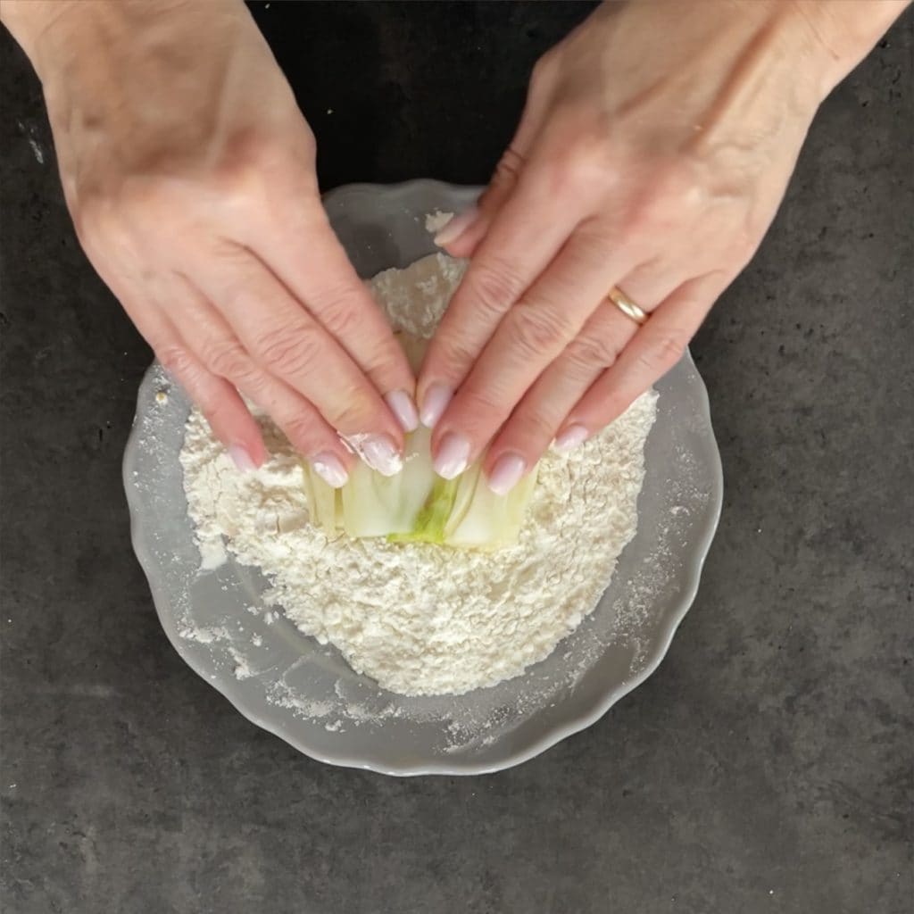 Haal elke venkel cordon bleu eerst door de bloem,