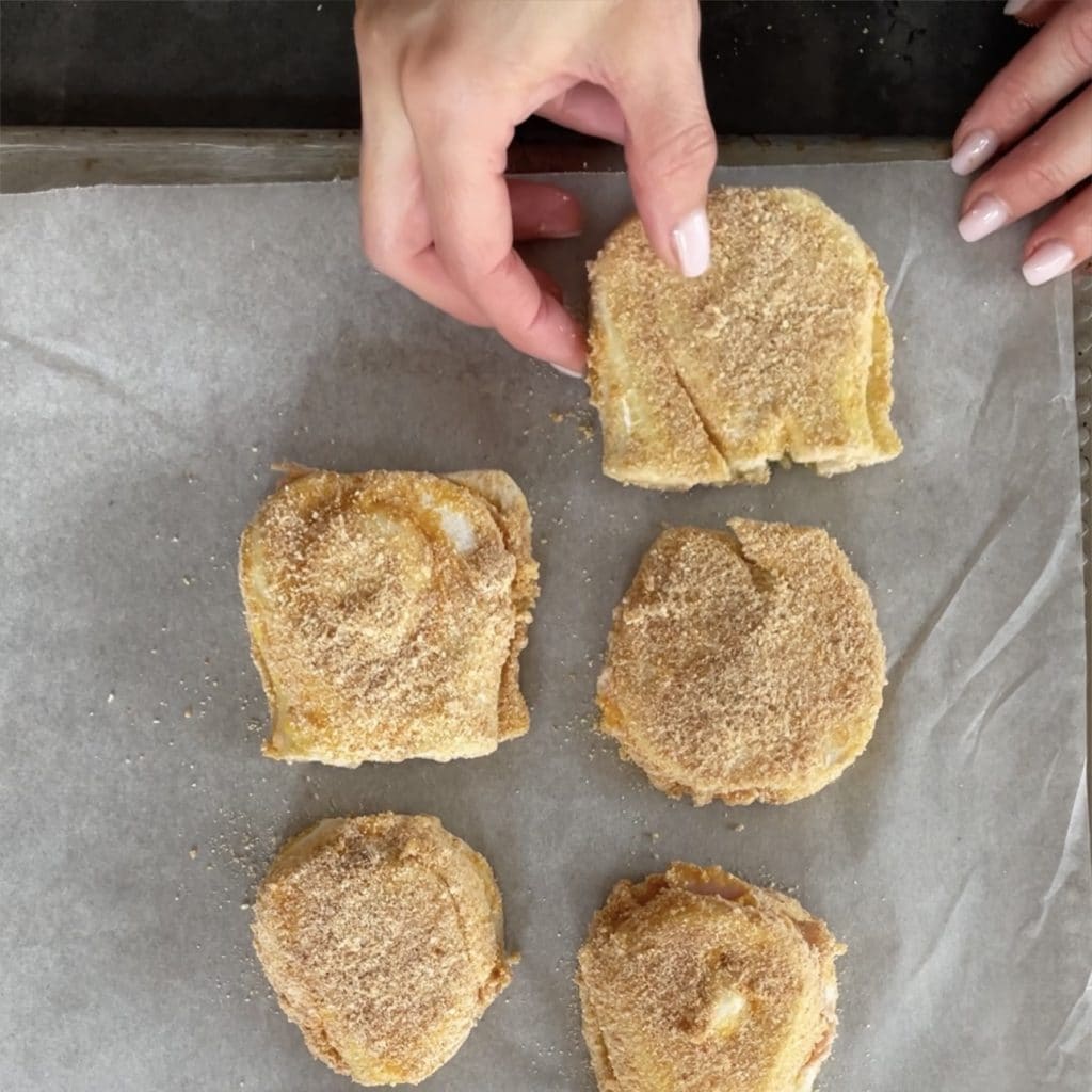 Leg de venkel schnitzels op de met bakpapier beklede bakplaat,