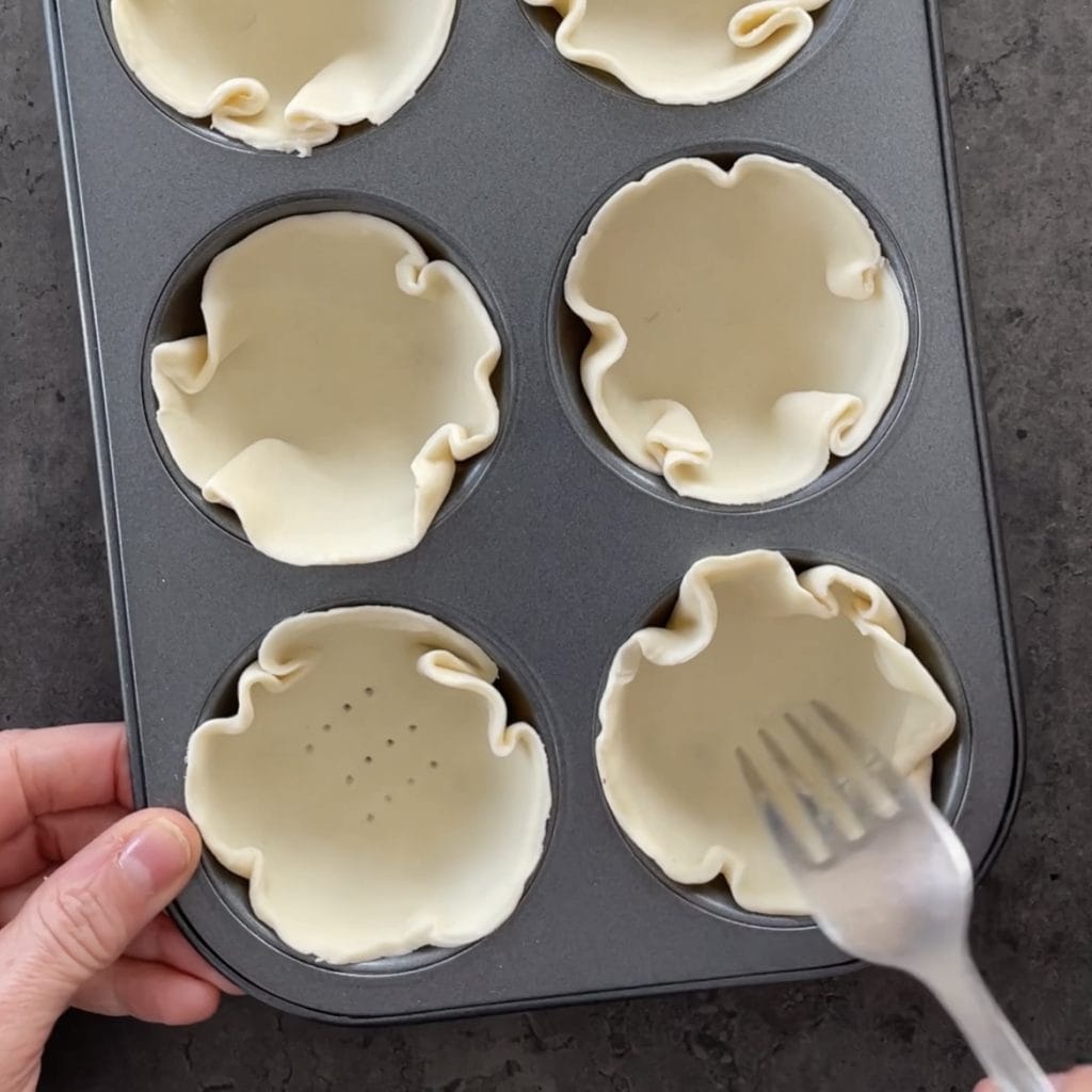 Prik met de tanden van een vork in de bodem van de mandjes,