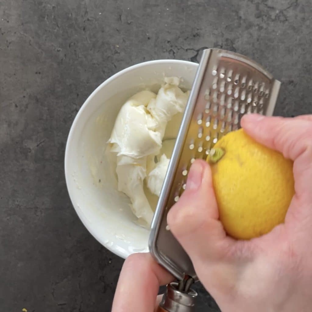 Voeg nu geraspte citroenschil toe.