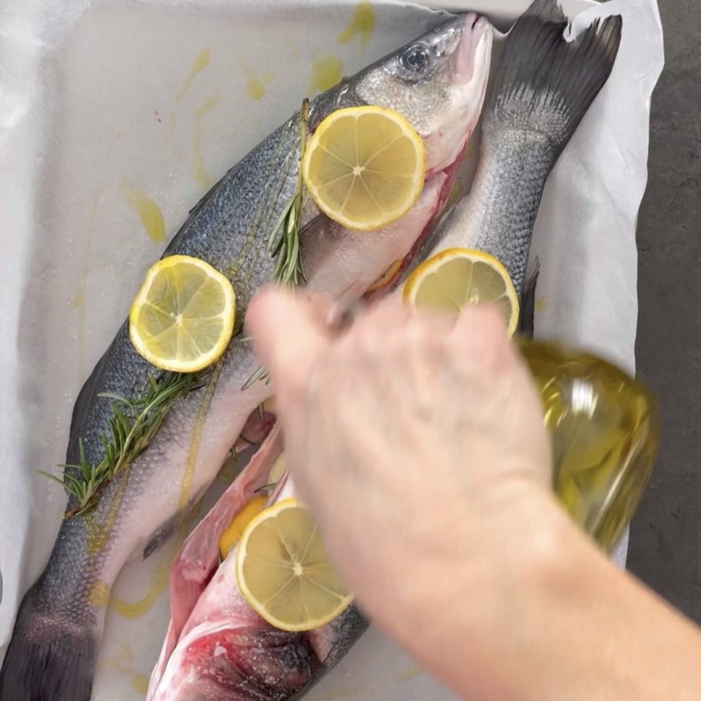 Leg op de zeeduivels plakjes citroen en rozemarijn,