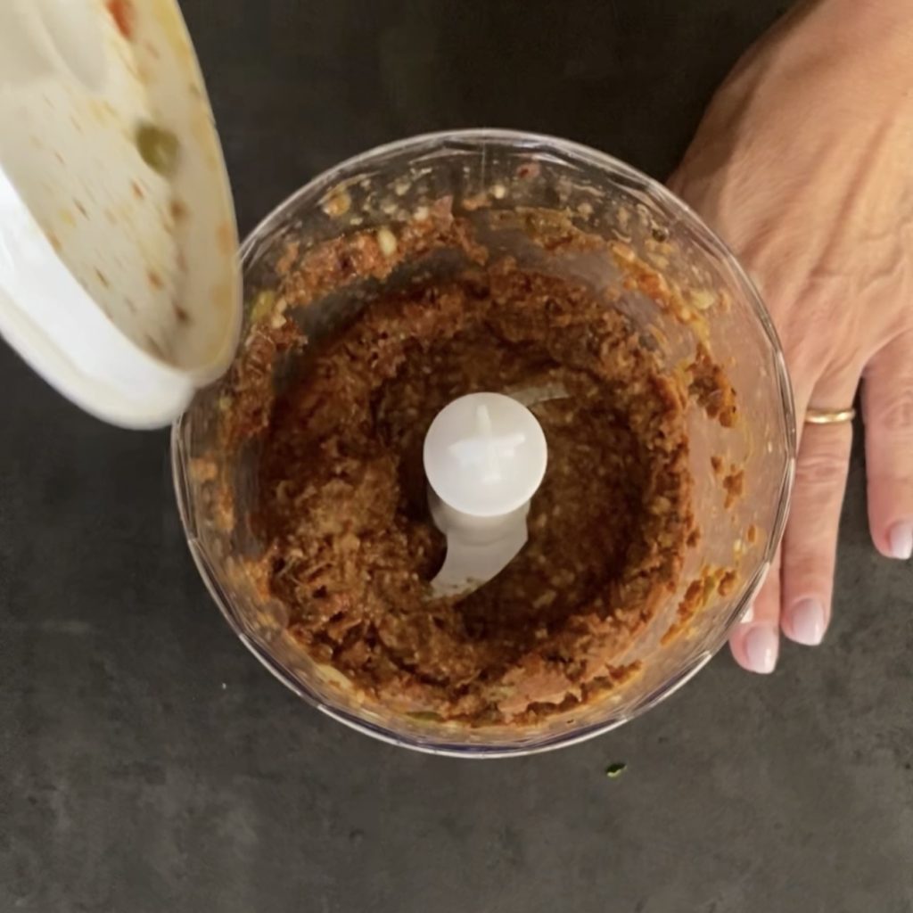 mix een paar seconden en voeg dan de extra vierge olijfolie toe,