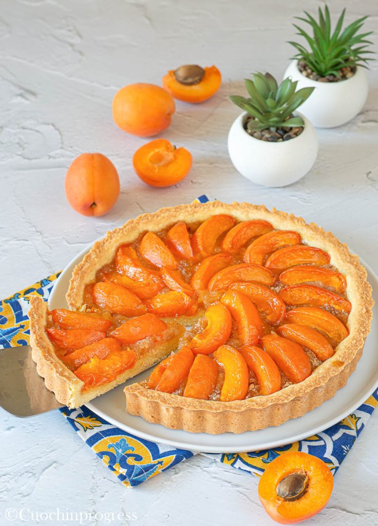 De ABRIKOZENVLAAI MET VERSE ABRIKOZEN is een echte zomerklassieker: eenvoudig en puur, perfect om de zoete en licht zure tonen van dit seizoensfruit naar voren te brengen.