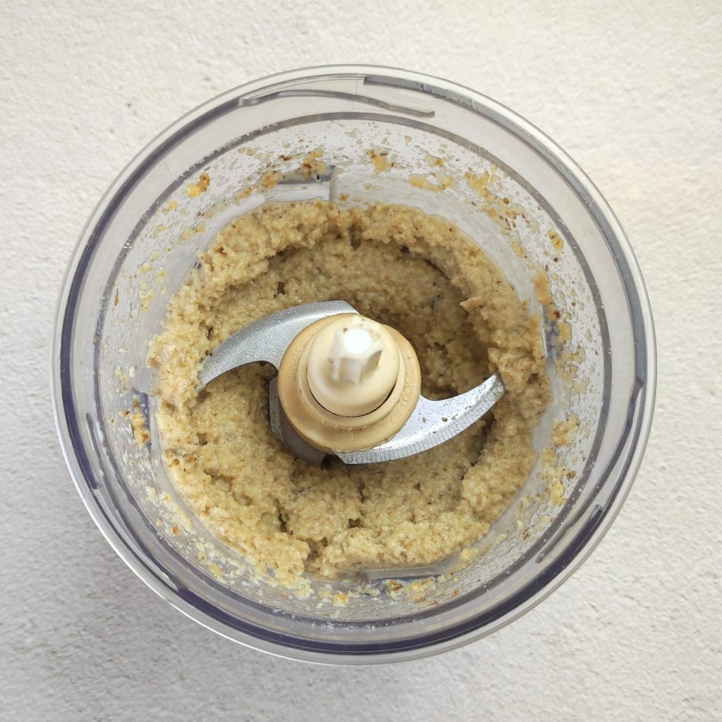 Als je een rustieker resultaat met stukjes walnoot wilt, kun je alles minder fijn pureren.