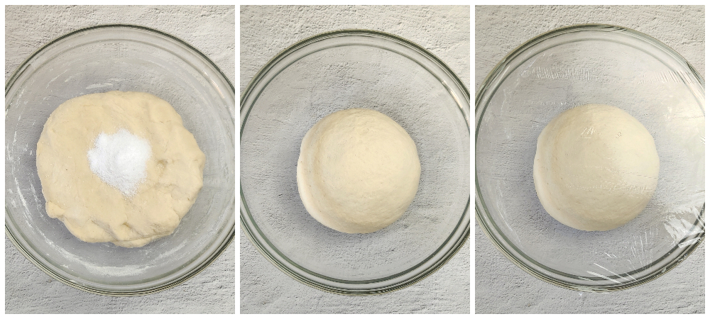 Voeg tenslotte het zout toe en kneed dit goed door.