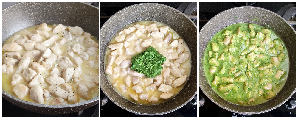 Houd de pesto apart en ga verder met de kip.