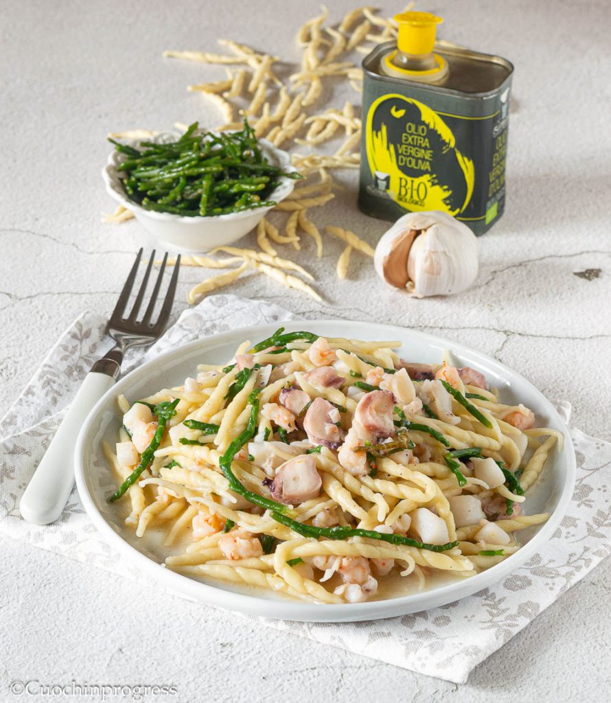Pasta met visragu en zeesasperges of zeekraal