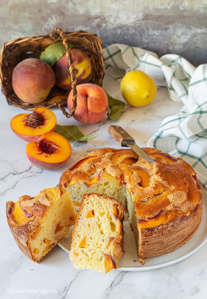 De PERZIKENTAART is een klassieker uit de huiselijke keuken, een lekkere en gezonde cake die ons altijd een glimlach bezorgt en ons doet denken aan de eerlijke gerechten uit onze jeugd. Perfect voor ontbijt of tussendoortje, en kan ook als dessert worden geserveerd, bijvoorbeeld vergezeld van een lichte custard. Het recept dat ik voorstel, vele keren met succes uitgeprobeerd, bevat veel stukjes fruit en zeer weinig vet, maar is daardoor zeker niet arm aan smaak of geur.