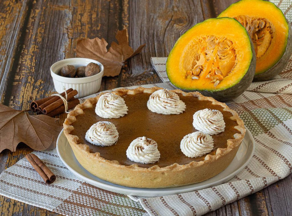 De POMPOENTAART is het ultieme herfstgebak, een grote klassieker uit de Amerikaanse traditie die je bij de eerste hap verovert met z’n omhullende geur van specerijen en z’n fluweelachtige textuur. Gemaakt met een bodem van krokante pâte brisée of licht zanddeeg en een romige vulling van pompoen, kaneel, gember en nootmuskaat, is het de onbetwiste koningin van de tafels tijdens Thanksgiving en de herfstfeesten.