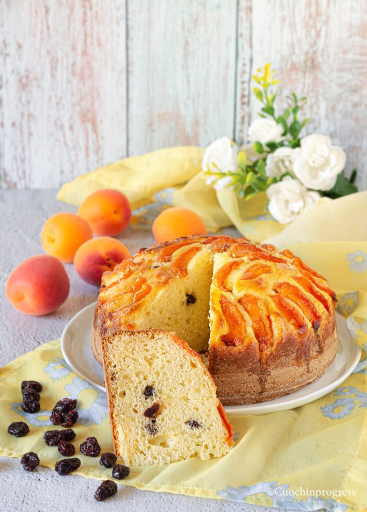Het belangrijkste kenmerk van deze taart is zeker zijn zachtheid, werkelijk uitzonderlijk dankzij de ricotta en de toevoeging van vers fruit op het oppervlak – de heerlijke rijpe zomerabrikozen – en de gedroogde cranberries erin. De taart is zacht en smaakvol, perfect om van te genieten met een kopje thee of om in de caffè latte te dippen, aangezien de ingrediënten — koolhydraten, suikers, vers en gedroogd fruit — perfect zijn om de dag energiek te beginnen. En, dat verzeker ik u, ook met een voldane glimlach van wie van lekker eten houdt.